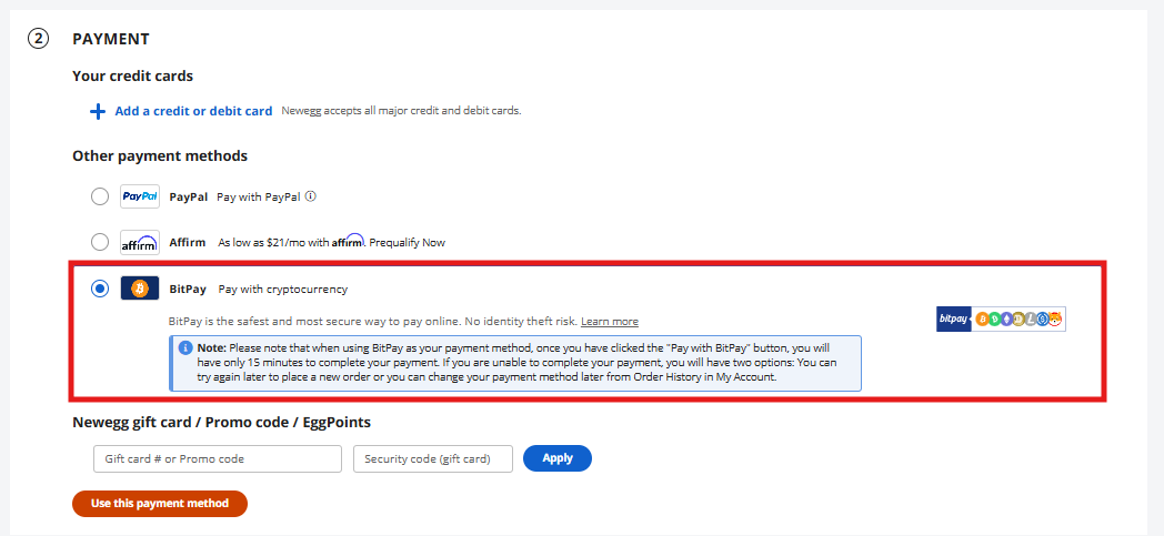 checking out with BitPay on Newegg is easy and secure. Orders fully paid by BitPay are final and cannot be returned for BitPay or hard currency. All returns will be made in the form of a Newegg Gift Card. All returns follow our return policy.